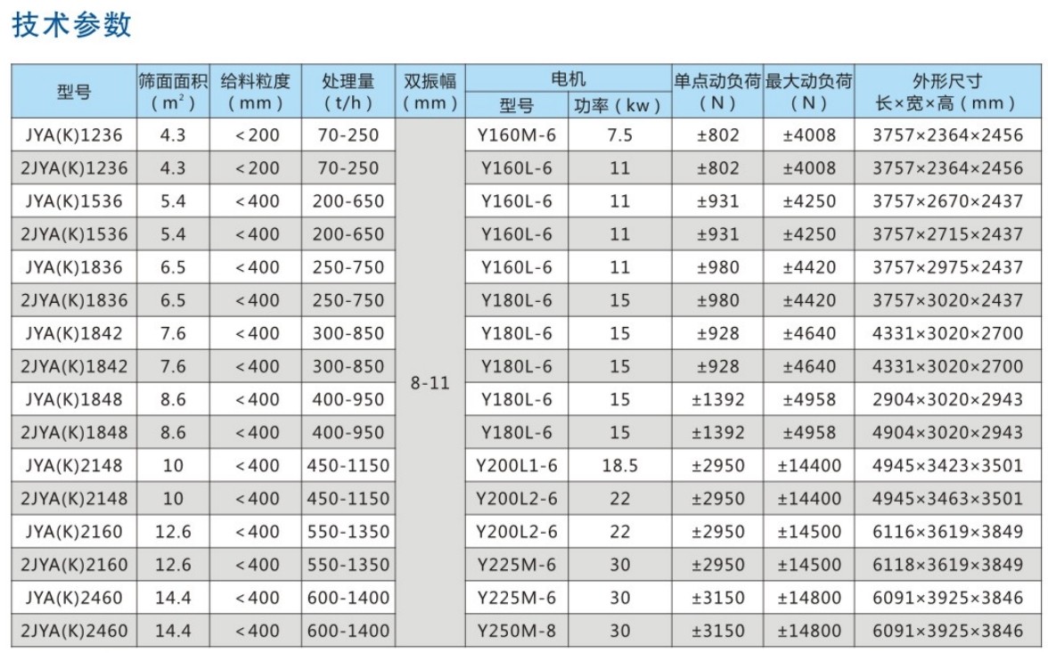 JYA(K)型圓振動篩運(yùn)動軌跡為圓,主要用于冶金選礦、選煤、建材、電力等行業(yè)干式物料的分級作業(yè)。該系列圓振篩采用目前國內(nèi)先進(jìn)的環(huán)槽鉚釘鉚接新工藝。大游隙軸承脂潤滑振動器,具有結(jié)構(gòu)簡單,堅(jiān)固耐用,噪聲低、安裝、維修方便等優(yōu)點(diǎn)。