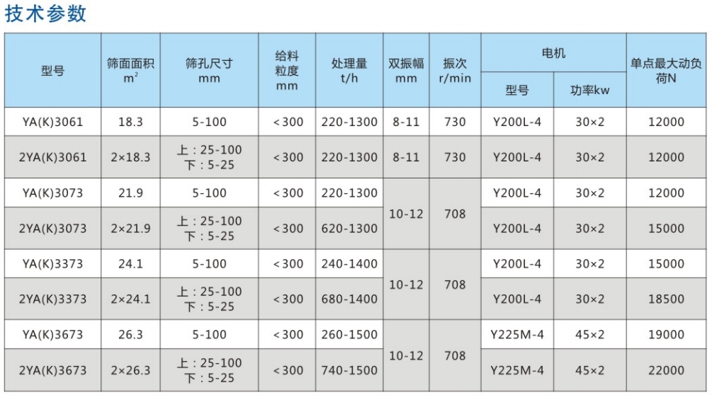 YA(K)系列大型圓振動篩物料運動軌跡為圓,是我公司針對礦山行業(yè)研制的大型篩分設備,它適合于物料粒度分級較大時使用,具有處理量大,篩分效率高,結實耐用,維護方便等特點。